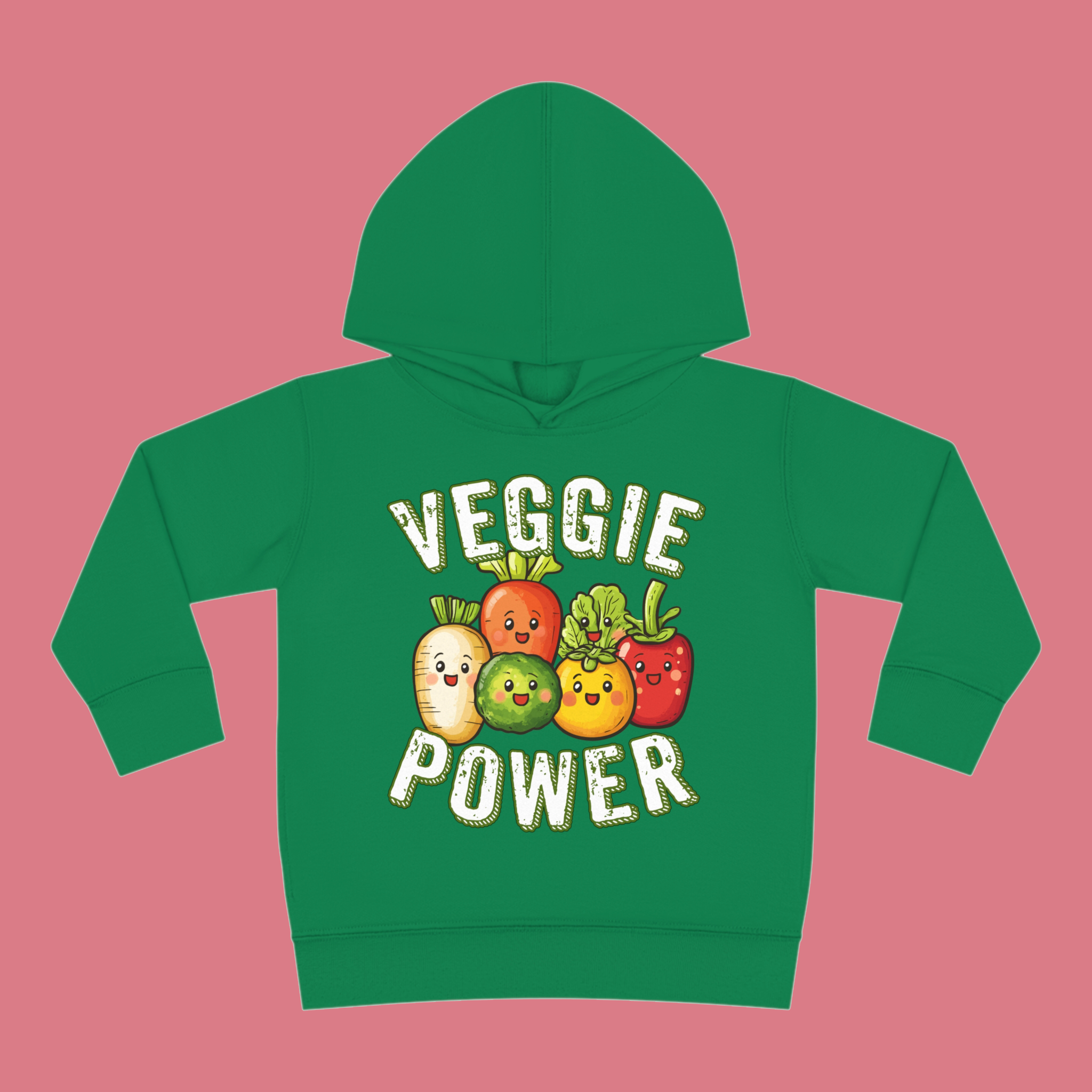 Power up with the “Veggie Power” Toddler Hoodie! Featuring adorable cartoon veggies, this hoodie is perfect for toddlers who love healthy eating. Made from a soft blend of 60% combed, ring-spun cotton and 40% polyester, the medium fabric (7.5 oz/yd²) provides warmth and coziness. With a jersey-lined hood, side-seam pockets, and an EasyTear™ label, it comes in eight bright colors and runs true to size. The “Veggie Power” hoodie is perfect for little veggie lovers!